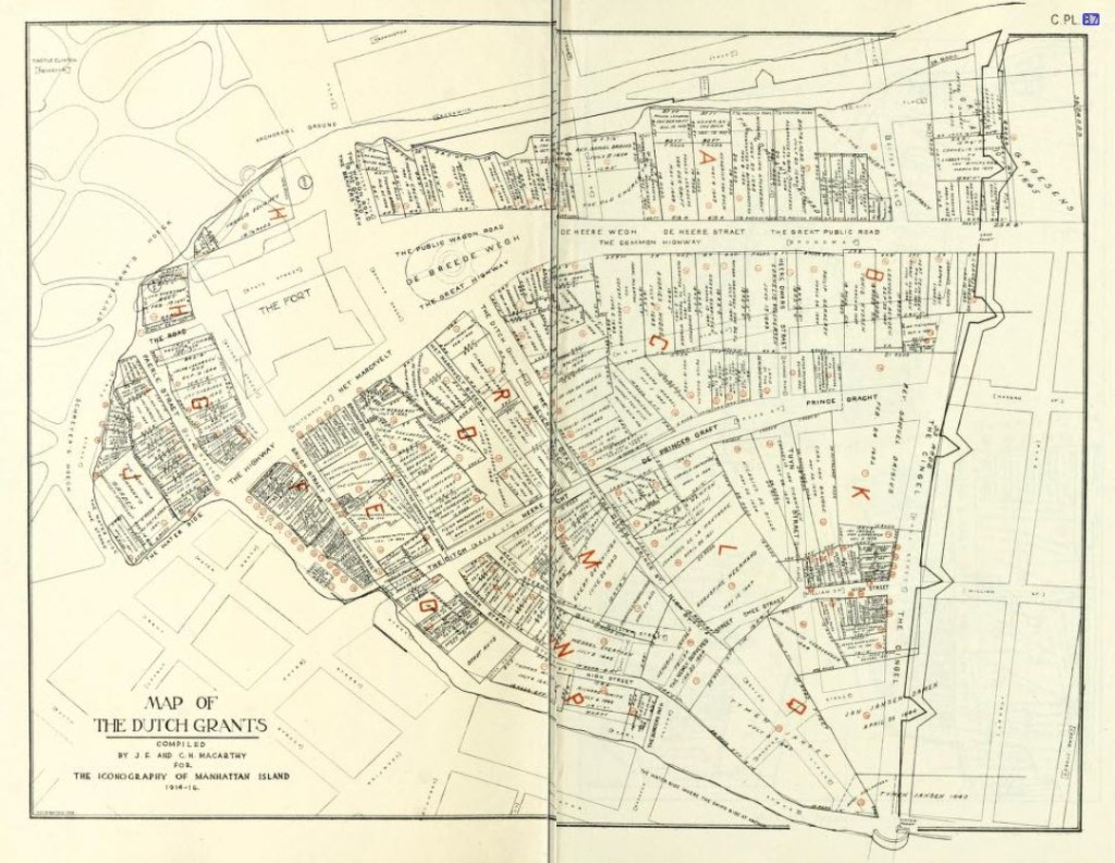 As if that weren’t enough, the map above aligns with another more decorative and famous map titled “Redraft of the Castello Plan New Amsterdam in 1660” which can be accessed at Wikipedia.